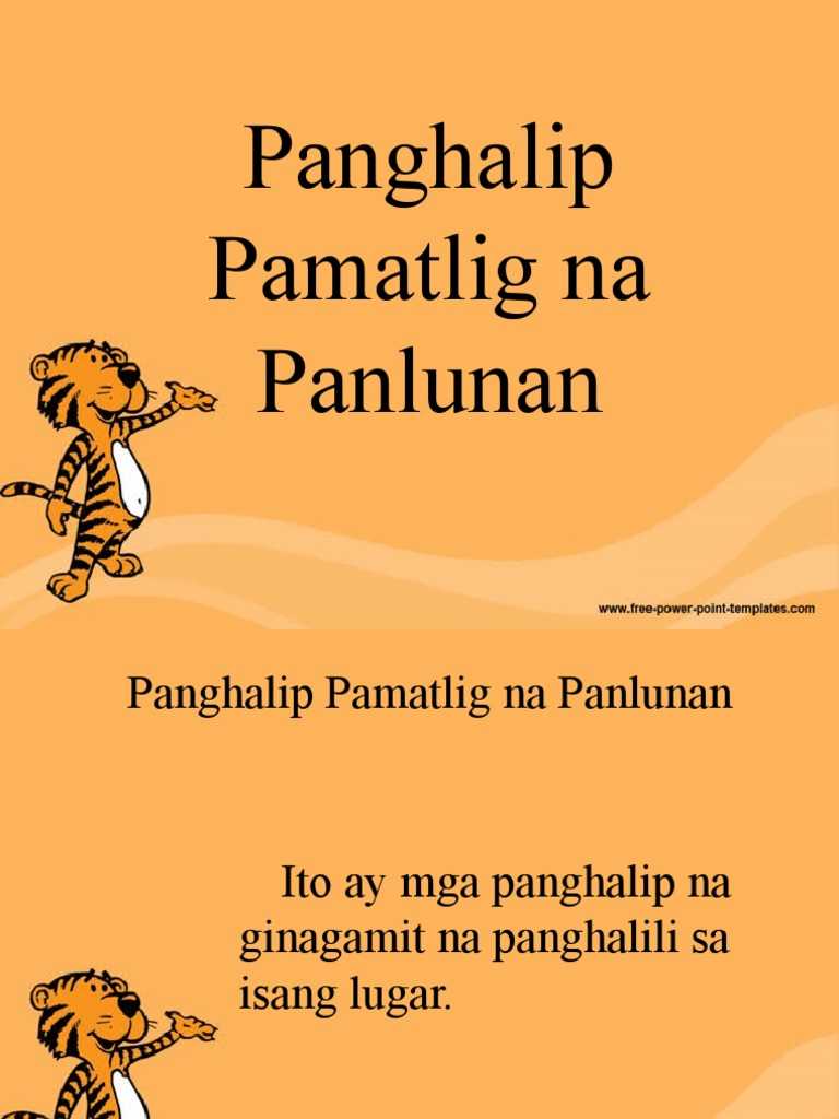 Panghalip na Pamatlig Demonstrative Pronoun Uri ng panghalip na ginagamit na paghalili sa pagtuturo ng taohayopbagay lugar. Ang papel ng mga ito ay hindi. PANGHALIP ang tawag sa bahagi ng pananalita na ginagamit na panghalili sa isang pangngalan sa pangungusap.
